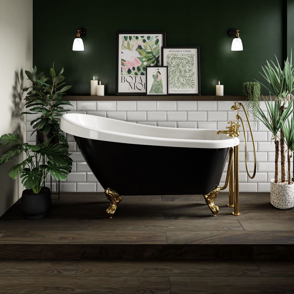 While a green bathtub might feel intimidating, this look is all about balance. You can keep the room feeling fresh by pairing your green bath with crisp white furniture and ceramics to create contrast. Or, if you’re committed to the colour, opt for a fully coordinated designer look by matching your bath panels to your green cabinets and vanity unit.