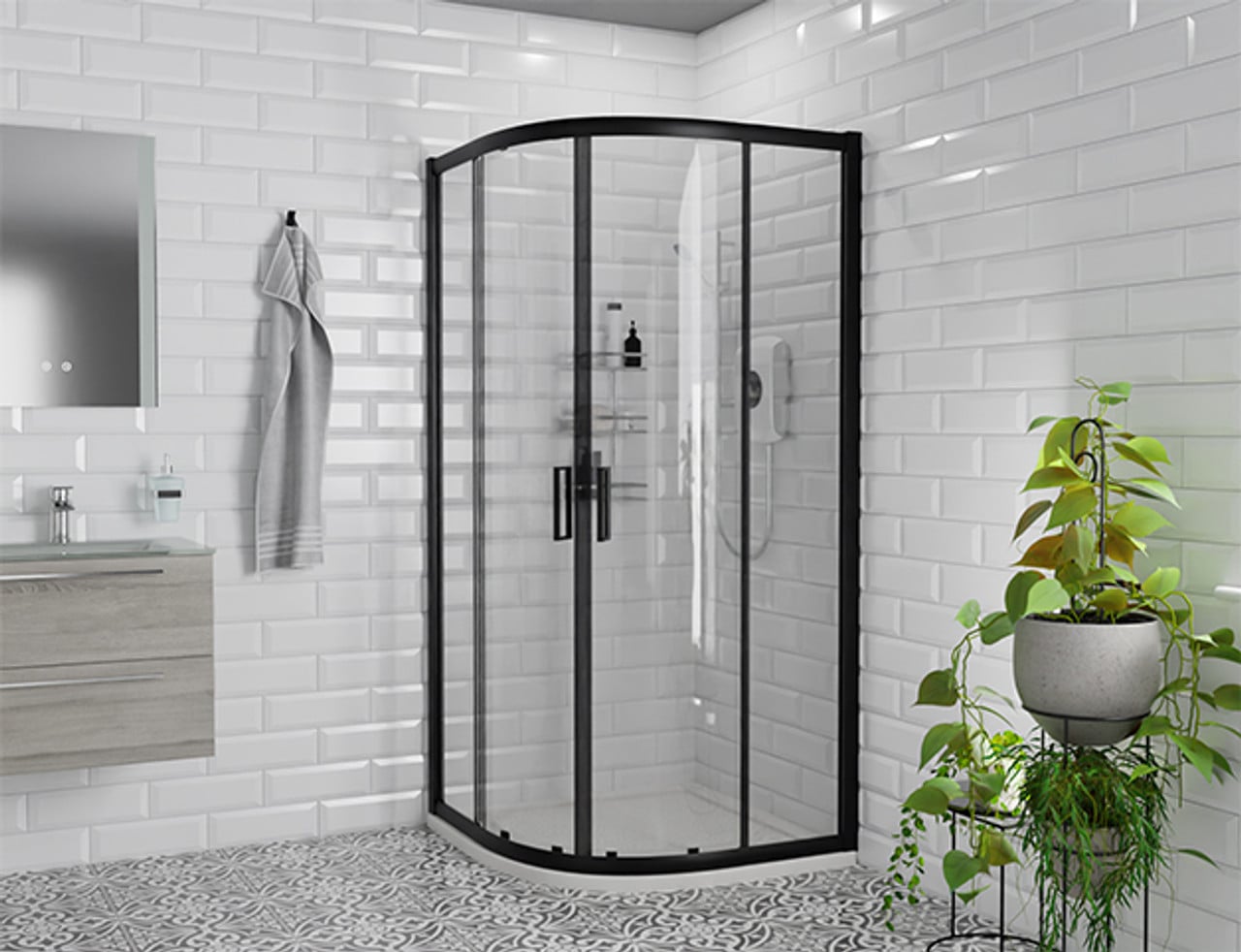 Usually equipped with a 6mm glass screen, quadrant enclosures often come with sliding doors that further enhance their space efficiency. They provide easy access without requiring additional clearance for a hinged door.